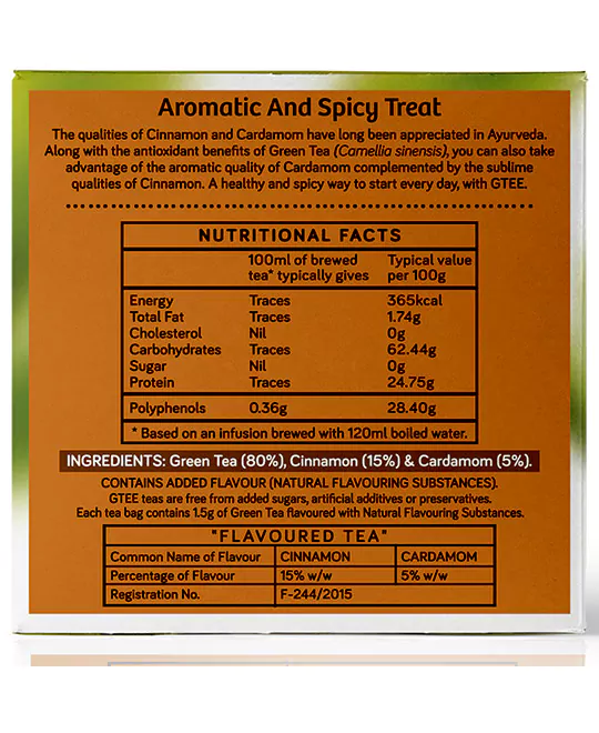 GTEE Green Tea - Cinnamon & Cardamom, 10 Tea Bags